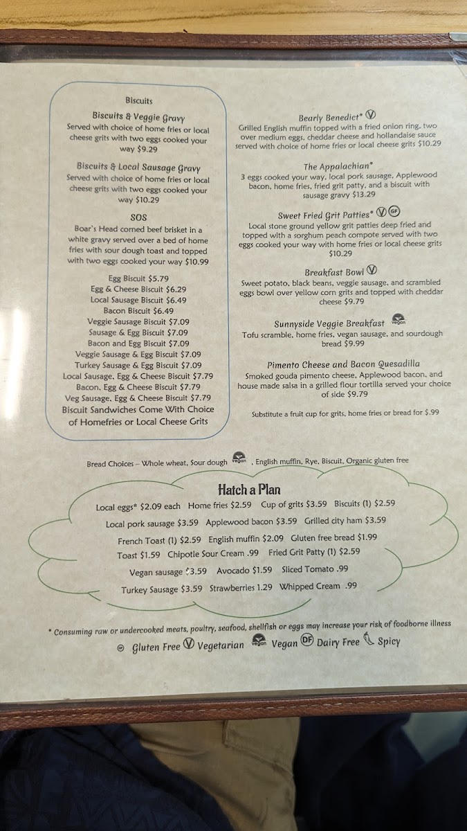 Welcome to SunnySide Cafe - Clemson, your new favorite breakfast destination nestled at 101 Market Street, Clemson, SC. This charming cafe specializes in delightful breakfast menus that cater to all tastes. Highlights include their Fried Green Tomato Biscuit, a scrumptious combination of fried green tomatoes, egg, cheddar, and bacon, served with home fries or local cheese grits for just $9.29. Another crowd-pleaser is the B52 Bomber wrap, bursting with flavors from scrambled eggs, cheddar cheese, and local pork sausage, all wrapped in a whole wheat tortilla for $10.79.